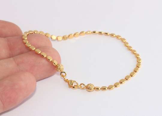 Bracciale a sfere in oro lucido 24k da 7,2", bracciale a sfere rifinito, XP244