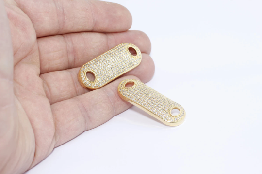 Ciondoli per bracciale in oro lucido 24k, 15x39 mm, micro pavé, ZRCN38