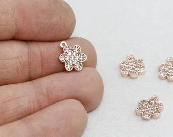 Charms a forma di fiore in oro rosa 9x12 mm, micro pavé, ZRCN127