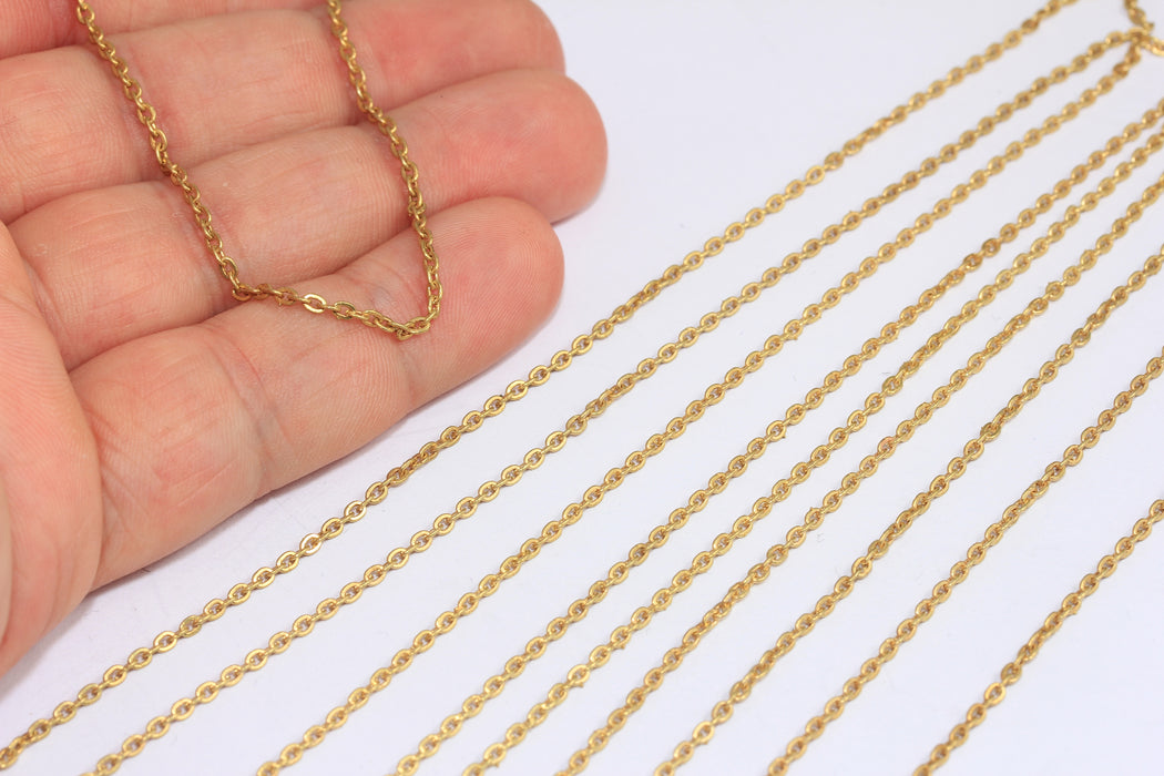 Catene ovali piatte in ottone grezzo da 1,8 mm, catene rolò ovali in ottone, KPT60