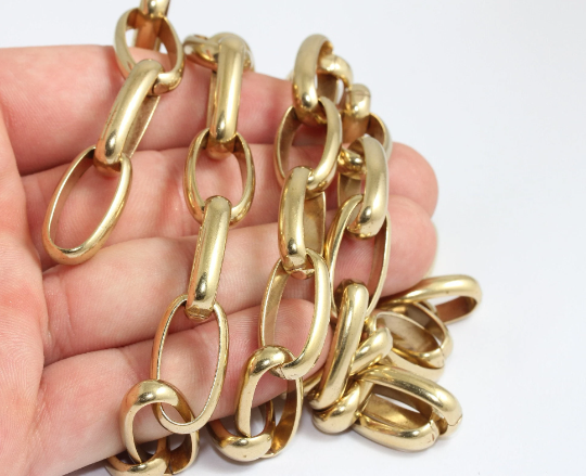 Catena a maglie in ottone grezzo da 14x25 mm, catena fatta a mano, cavo BXB94-1