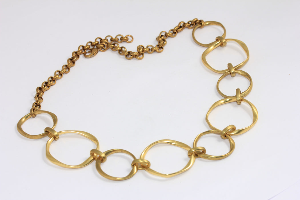 Collana a maglie rotonde in ottone grezzo da 18'', collana a maglie circolari rifinite, collana con catena ad anello, BXB390-4