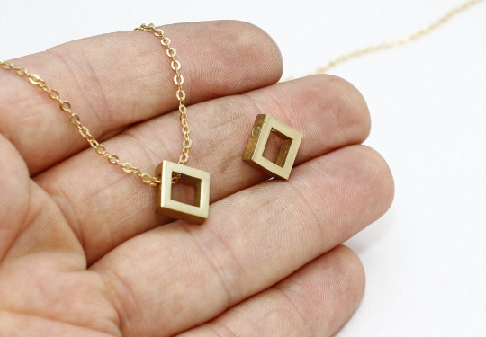 Ciondoli quadrati in ottone grezzo da 10 mm, pendente quadrato, SOM174