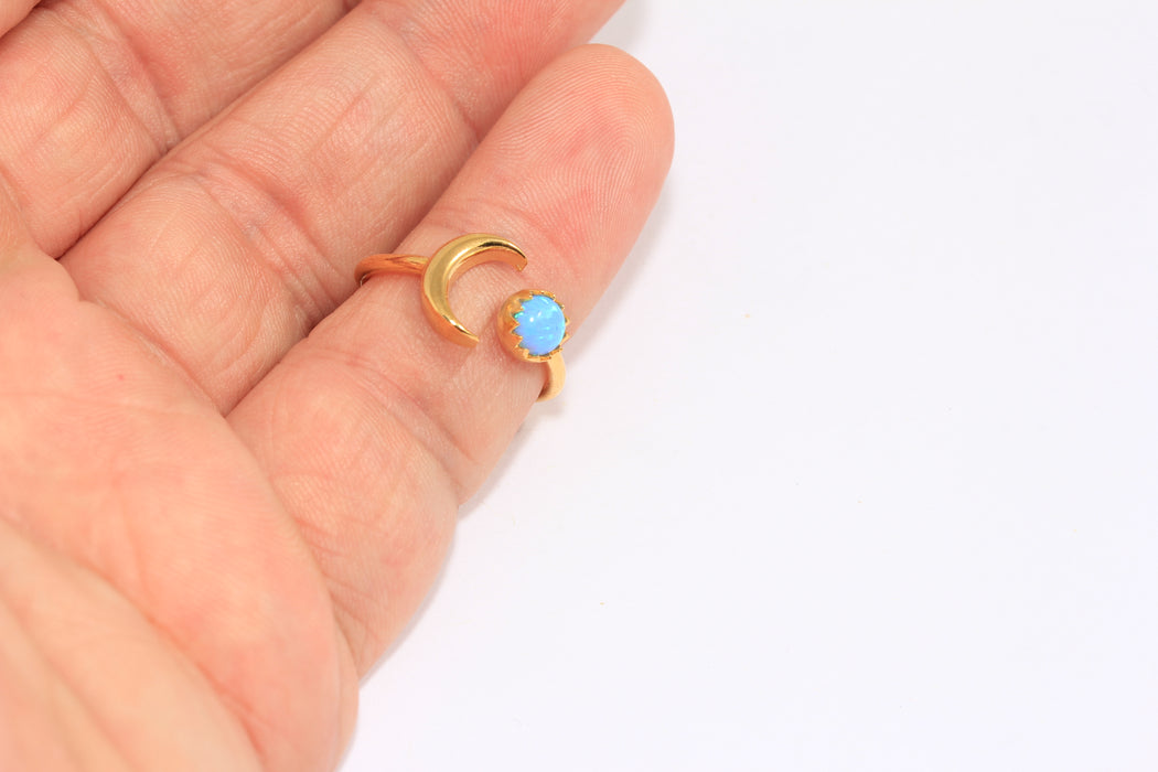 Anello con luna in oro lucido 24k da 16-17 mm, anello con pietra opale lunare CZ, SLM904