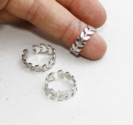 Anelli a forma di fiore placcati in rodio da 16-17 mm, anelli con foglia d'argento, CR157