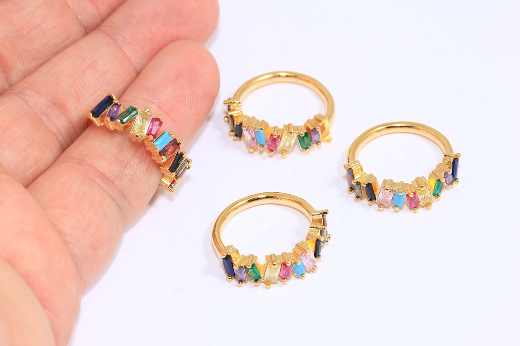 Anelli in oro lucido 24k con zirconi cubici da 17,5 mm, anello con pietre colorate baguette, SLM365
