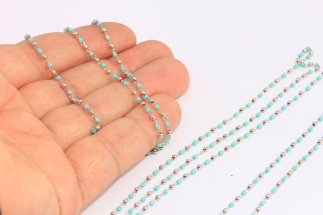Catene con perline color turchese placcate in rodio da 2 mm, catena con perline a palline, CHK235-1