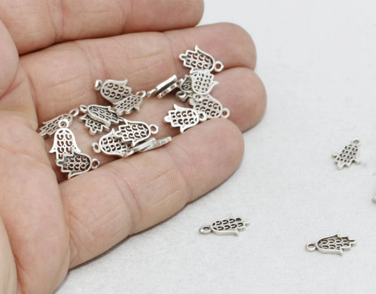 Ciondoli Hamsa in argento antico 8x12 mm, gioielli Hamsa, VF AG65