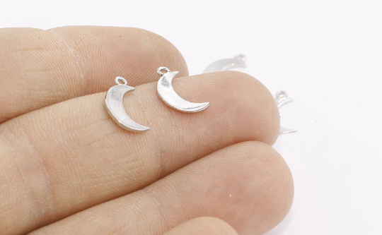 Ciondoli a forma di luna, placcati in rodio, 8x14 mm, mezzaluna, FNL119