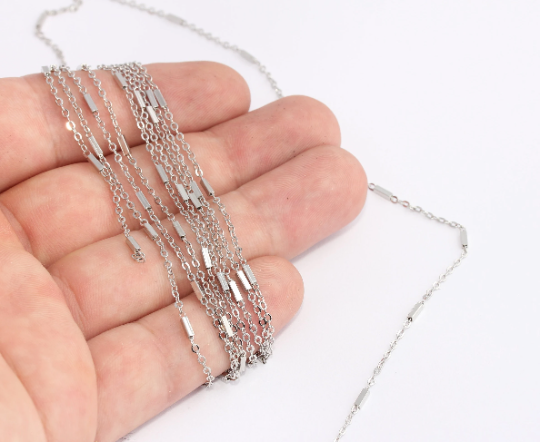 Catena a barra placcata in rodio da 1,5x2 mm, saldata, saldata CHK354
