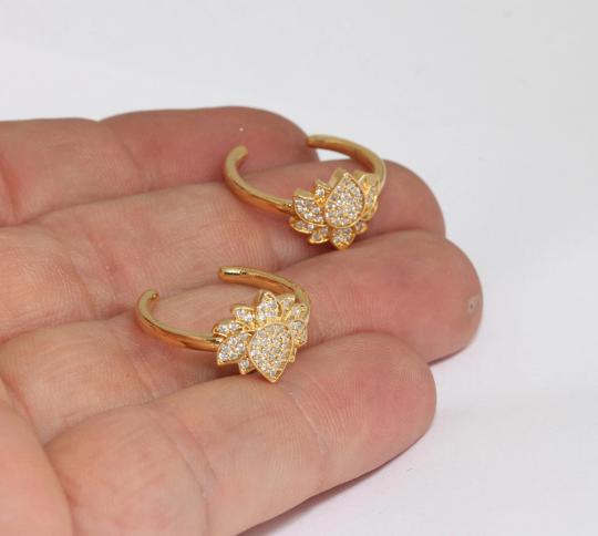 Anelli Lotus in oro lucido 24k da 16-17 mm, anelli micro pavé, oro BRT43