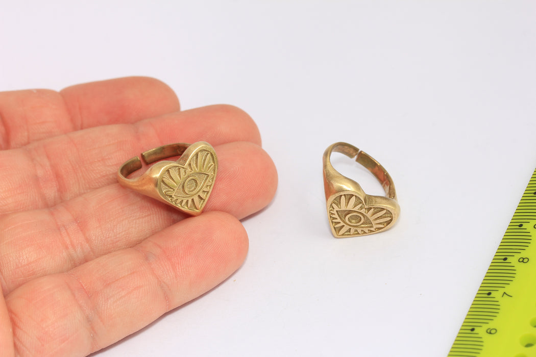 Anello anti-malocchio in ottone grezzo da 16-17 mm, a forma di cuore, CHK134-5