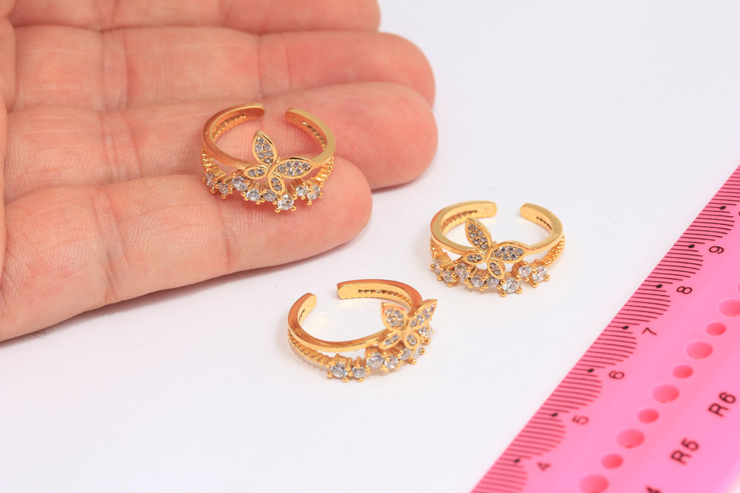 Anello a farfalla in oro lucido 24k da 17-18 mm, anelli a farfalla con micro pavé, SLM930