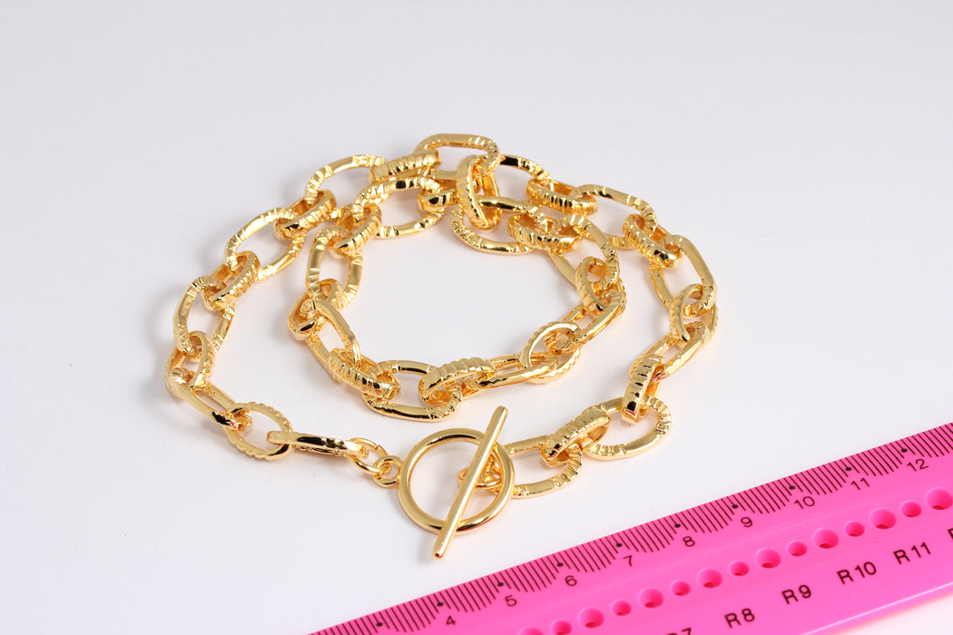 Collana con catena a maglie in oro lucido 24k da 18'', collana con barretta, catena ovale, collana in oro regolabile, collana delicata BXB424-2