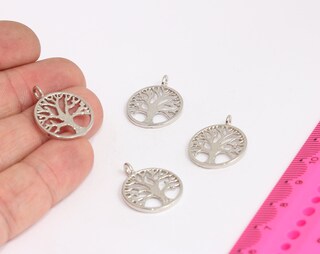 Albero della vita placcato rodio 18x23 mm, Albero della vita, Ottone MTE665