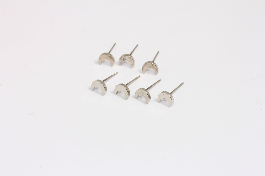Orecchini a forma di luna placcati in rodio da 6x7 mm, orecchini a perno a forma di mezzaluna, BRT37
