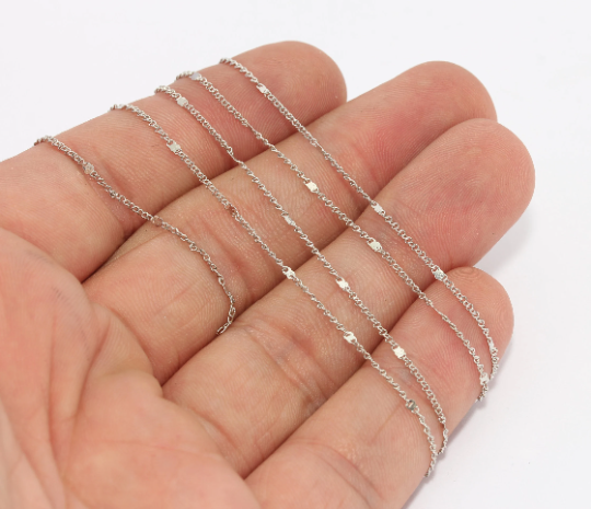 1,5mm Rhodium Plated Curb Chains, Tiny , Bar Chains BXB245
