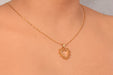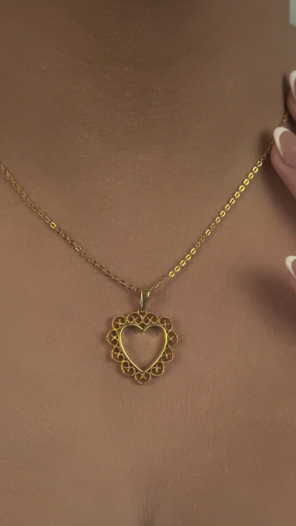 17'' +2'' 24k Shiny Gold Heart Charm Ready Necklace, Vintage Heart Shaped Frame Pendant Necklace, DC191-10