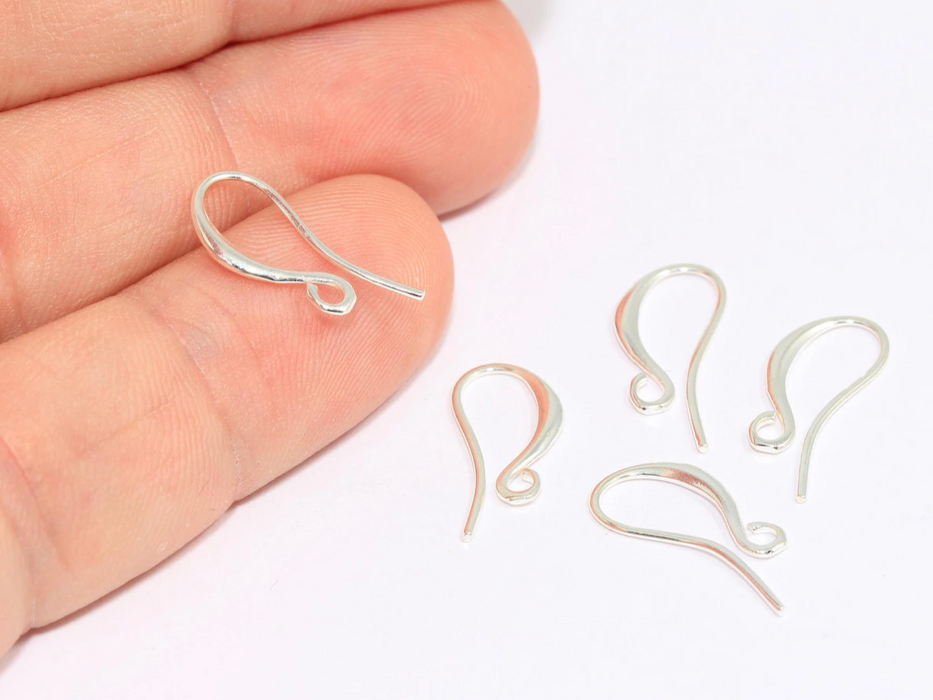 8x15mm Silver Plated Earring Hooks, Fish Hooks, Ear Wires, CMR13