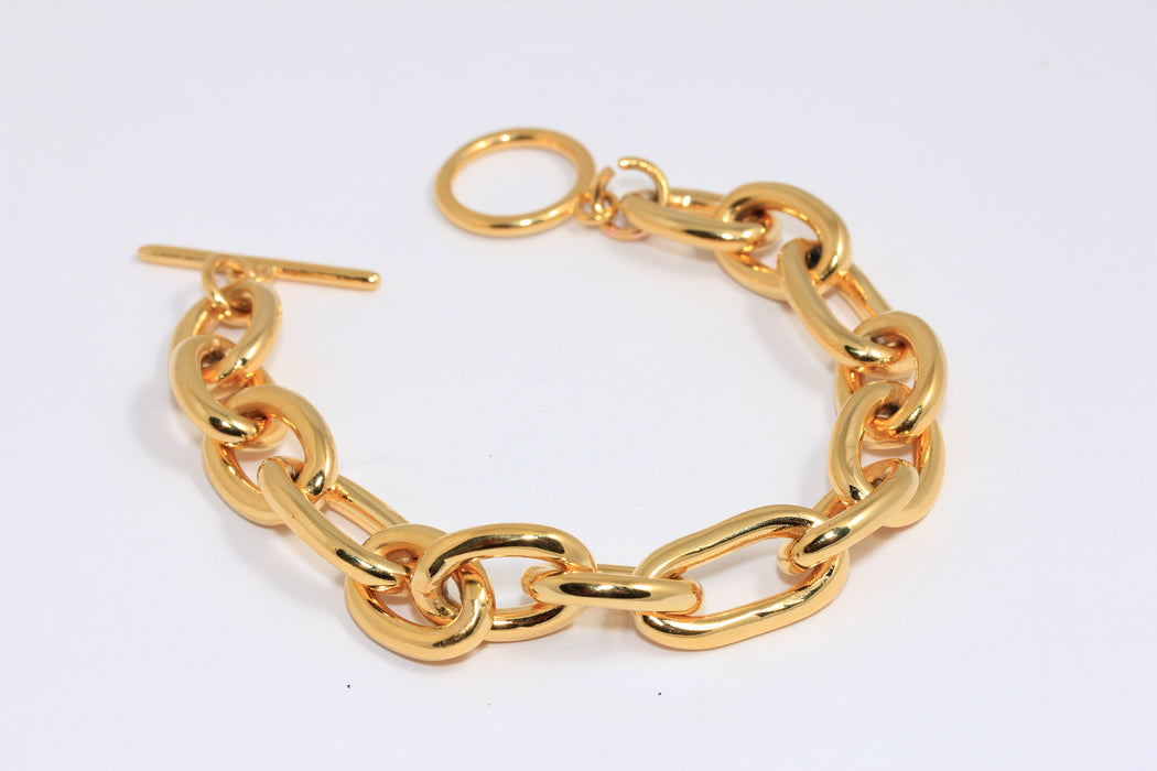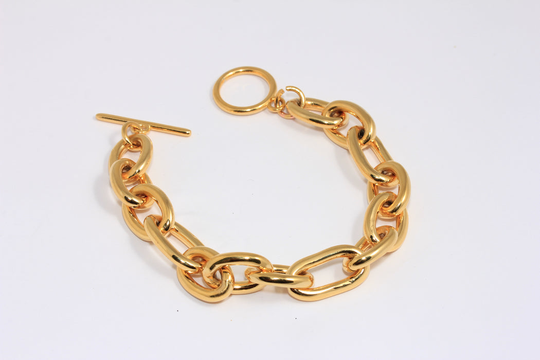 7'' 24 Ayar Parlak Altın Büyük Bağlantı Zinciri Bileklik, Tokalı Bileklik, BXB196-7