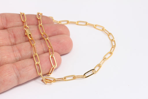 4,5 mm 24 Ayar Parlak Altın Çubuk Kolye, Hazır Altın Oval Çubuk Zincirler, BXB395-157