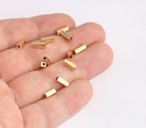 Malzeme : Pirinç Boyut : 3x8mm Delik İç Boyutu: 1,5mm Renk : 24 ayar parlak altın kaplama Miktar : İsteğe bağlı