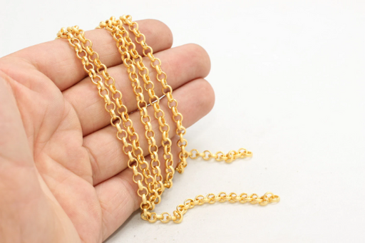 4,5 mm 24 ayar Mat Altın Rolo Zincir, Lehimsiz Zincir, Toplu BXB110-2