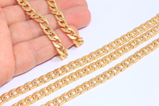 7 mm 24 Ayar Mat Altın Yüzlü Bordür Zinciri, Güçlü Lehimli Bordür Zincirleri, BXB202-4