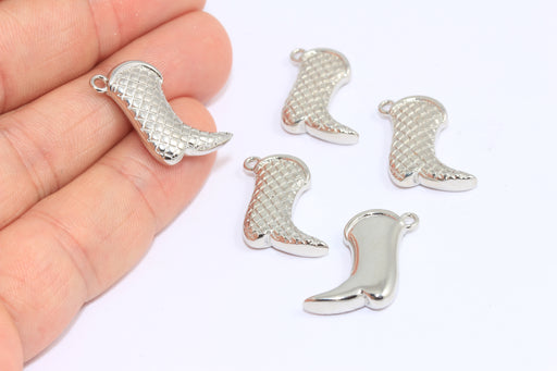 7,8x20 mm Rodyum Kaplamalı Çizme Takıları, Dokulu Kovboy Çizmesi Kolye Ucu, AG31