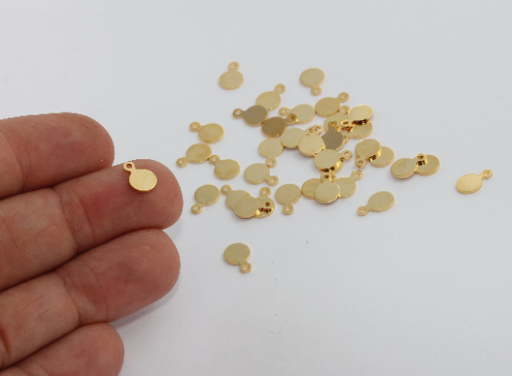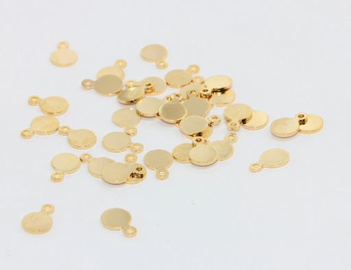 7 mm 24 Ayar Parlak Altın Madeni Para Takıları, Damgalama Diski, Yuvarlak Takılar, DOM42
