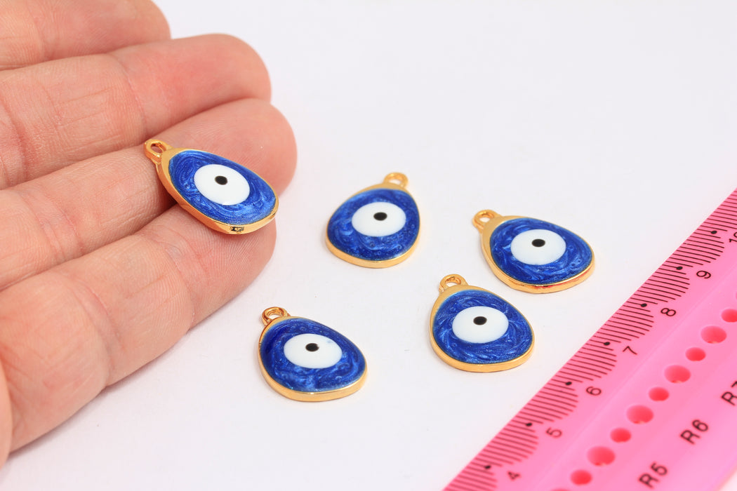 14x22mm 24 ayar parlak altın nazar boncuğu, kolye ucu, nazar boncuğu takıları, zarif kolye ucu, damla nazar boncuğu takıları, altın kaplamalı bulgular, ROSE587