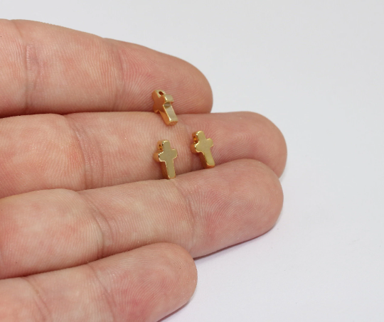 5x9mm 24 ayar Parlak Altın Haç Tılsımları, Küçük Altın Haç MLS383