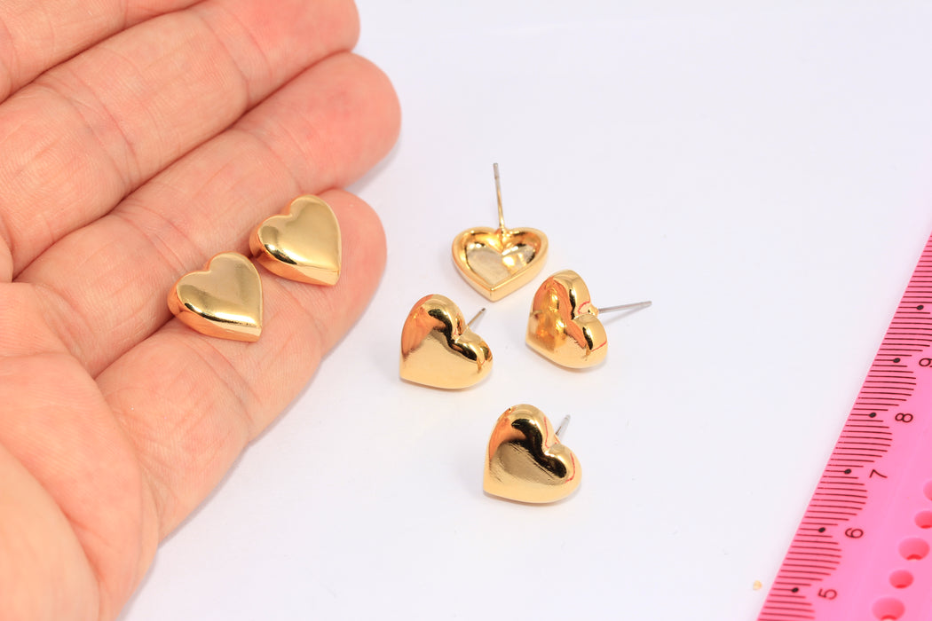 13x13 mm 24 Ayar Parlak Altın Kalp Küpeler, Kalp Şeklinde Küpeler, CHK333-1