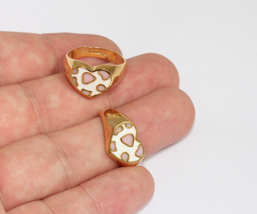 17-18 mm 24 Ayar Parlak Altın Kalp Yüzükler, Mine Kalp Yüzük, SLM75-1