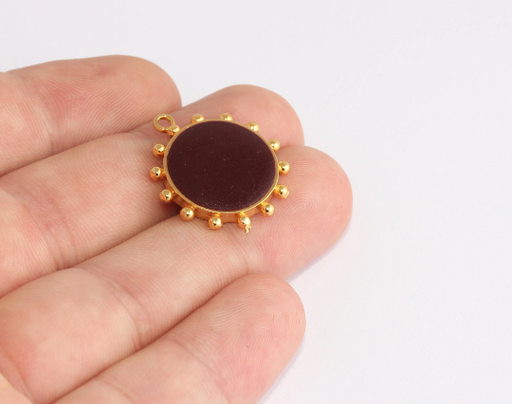 Malzeme : Pirinç Boyut : 22mm Renk : 24 ayar Parlak Altın Kaplama Mine Rengi: Kahverengi Miktar : İsteğe bağlı