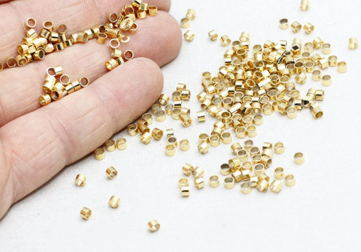 3 mm 24 Ayar Parlak Altın Tüp Boncuklar, Mini Yuvarlak Tüpler, BRT620