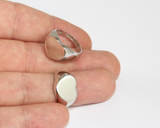 17 mm Rodyum Kaplama Kalp Yüzük, İsimlik Yüzük, Pirinç MLS773