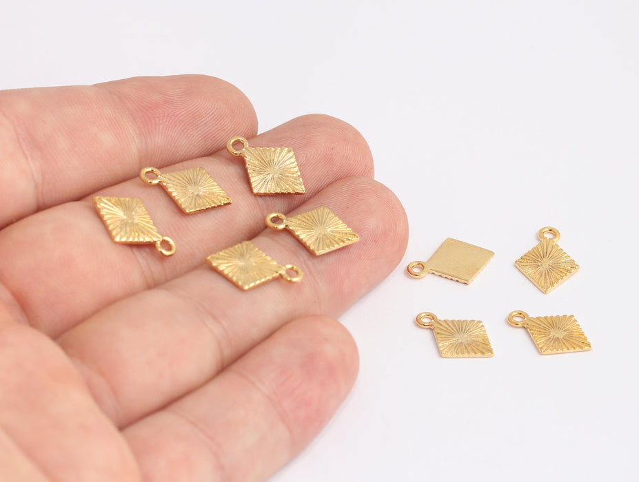 11x15mm 24 Ayar Parlak Altın Oyun Kartı Tılsımları, Elmas Sembollü Boncuklar, KDR103-2