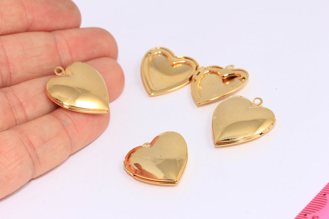 23x25mm 24 Ayar Parlak Altın Kalp Madalyon Kolye, Kalp, Altın SLM299