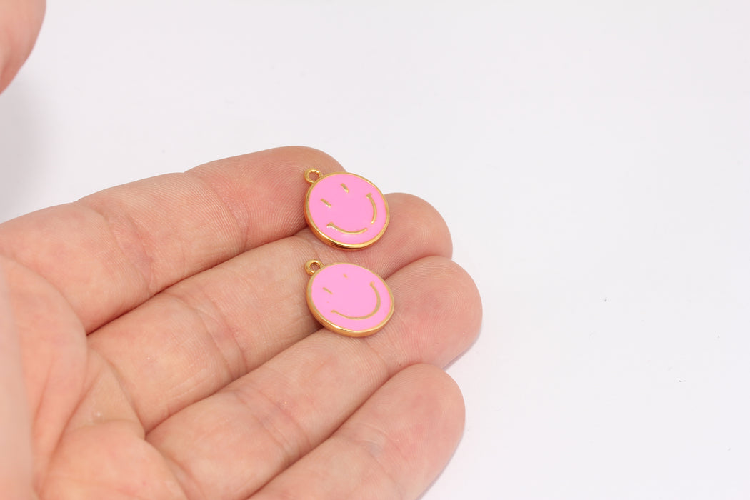 24 Ayar Parlak Altın Kaplama Gülümseme, 14x12 Gülümseme Tılsımı, Pembe, FRB101