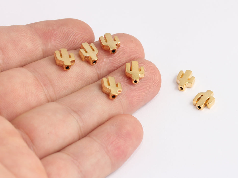 8x10mm 24 Ayar Parlak Altın Kaktüs Tılsımları, Sevimli Kaktüs Boncukları, KDR92-4