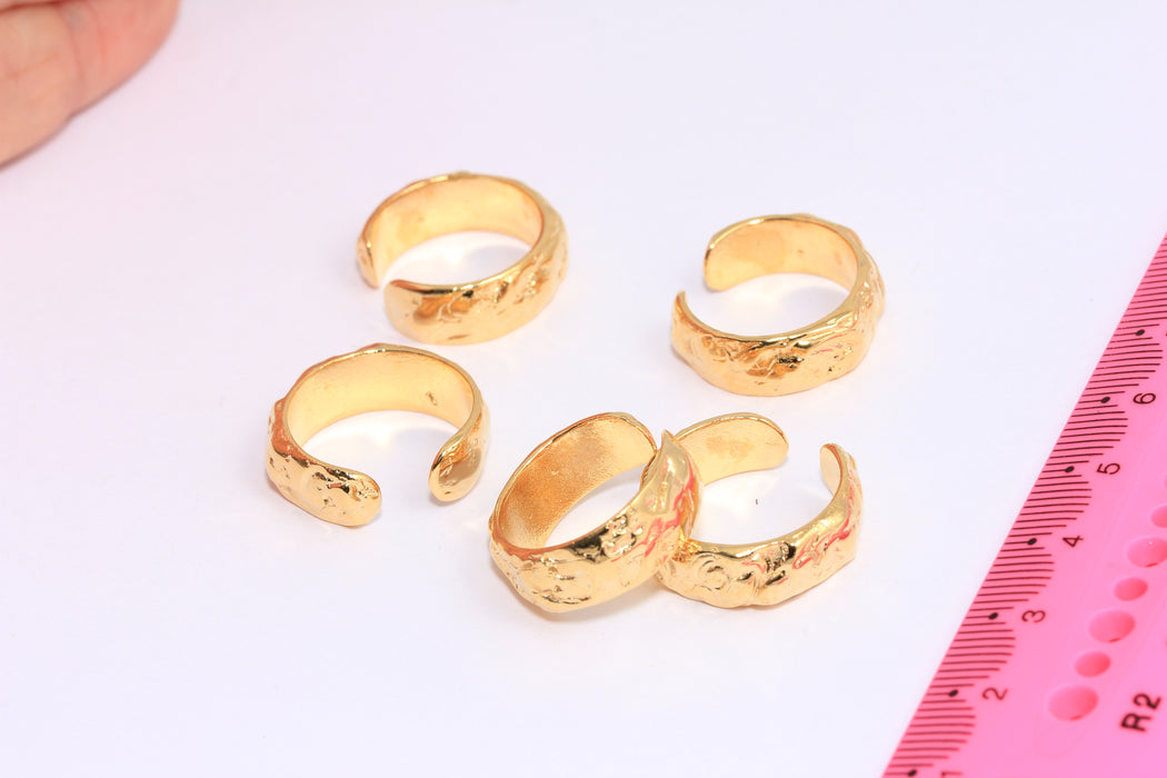 18-19 mm 24 Ayar Parlak Altın Bant Yüzük, Düzensiz Şekilli Manşet Yüzükleri, BRT194