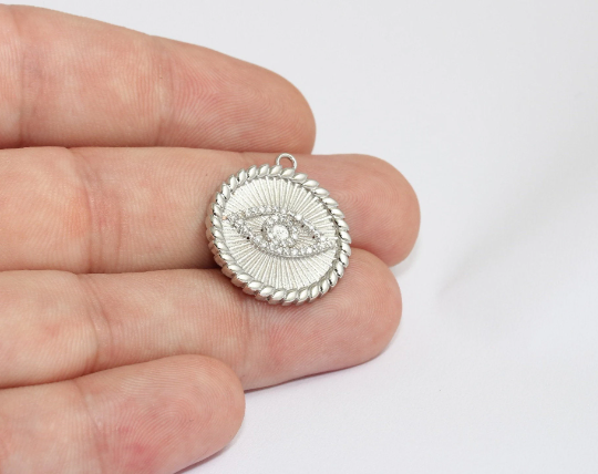 22x25mm Rodyum Kaplama Nazar Boncuğu Kolye, Madalyon, Altın MLS593