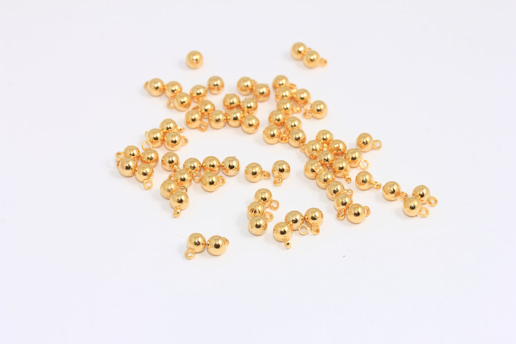 4 mm 24 Ayar Parlak Altın Top Boncuklar, Top Damla Bilezik Takıları, HLS21