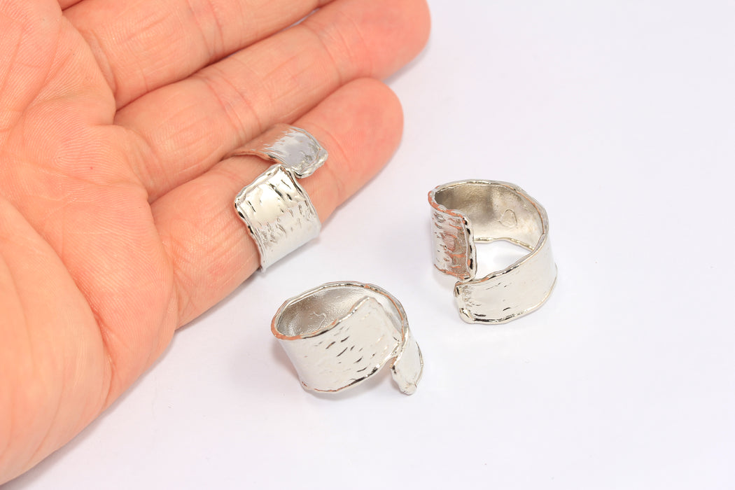 16-17 mm Rodyum Kaplama Bant Yüzük, Dokulu Manşet Yüzükleri, CHK147-2