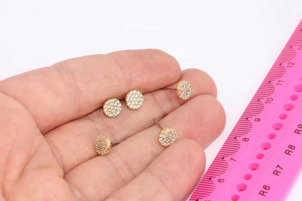 7 mm 24 Ayar Parlak Altın Küpe, Mikro Döşeme Zirkon Taş, Altın Kaplama Küpeler, SLM327