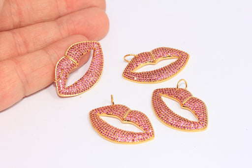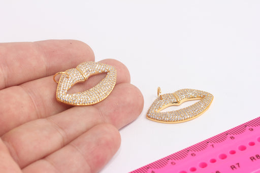 21x34 mm 24 Ayar Parlak Altın Dudak Kolye, Zirkon Taşlı Mikro Kaplama Dudak Kolye, Zarif Dudak Tılsımı, Kübik Zirkon Taşlı Zirkon Kolye, MLS980