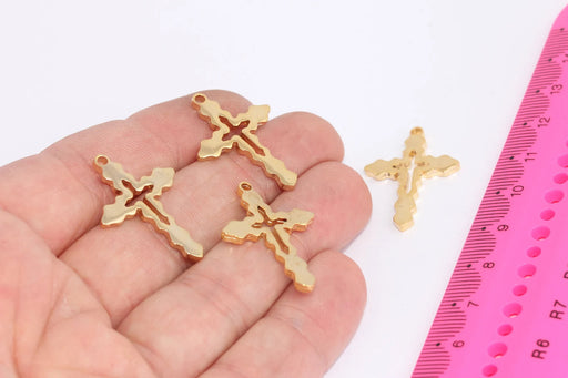 21x30 mm 24 Ayar Parlak Altın Kaplama Haç Kolye, Haç Madalyon Kolye, Haç Takıları, Katmanlı Kolye, Dini Takılar, MLS242