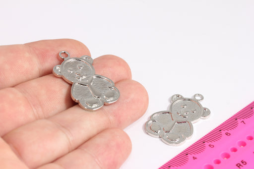 21x33 mm Rodyum Kaplama Ayı, Hayvan Takıları, Ayı Madalyonu, Kravatlı Ayı, Ayı Kolye Ucu, Hayvan Kolye Ucu, Gümüş Bulgular, CR35-1