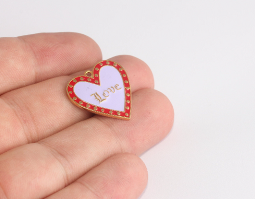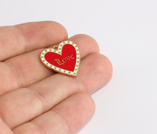 22 mm 24 Ayar Parlak Altın Kalp Takılar, Mine Kalp Disk Madalyon, BXB154-8